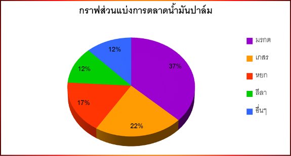สำหรับแบรนด์น้ำมันปาล์ม พบว่า แบรนด์มรกต มีส่วนแบ่งการตลาดมากที่สุด ประมาณร้อยละ 37 รองลงมาคือ แบรนด์เกสร ร้อยละ 22 แบรนด์หยก ร้อยละ 17 แบรนด์ลีลา ร้อยละ 12 และแบรนด์อื่นๆ อีกร้อยละ 12 ตามลำดับ